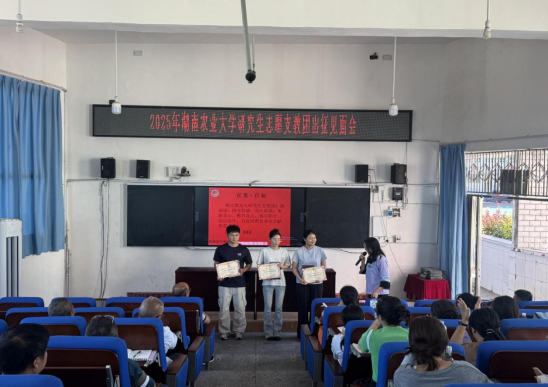 8月28日至29日,支教团在麻栗场镇中心小学参加岗前培训,麻栗场镇中心小学以简约而庄重的仪式为支教团举行出征见面会,中心小学与望高小学的教师们悉数到场。三位支教老师并肩挺立,右拳紧握,誓言掷地有声:“为我国教育事业贡献青春力量!”随后,支教团团长熊若涵表示:“誓言绝非一句口号,更是一份沉甸甸责任。我们将把湖南农大‘朴诚、奋勉、求实、创新’的校训融入望高的课堂和田野,用专业所学回应乡村孩子的热切期待。