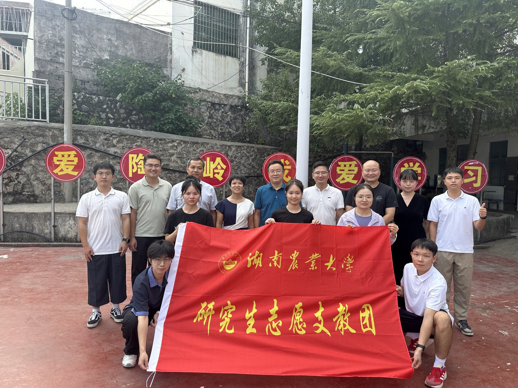 研究生工作部副部长龙小军陪同第七届研究生支教团进驻学校。当地政府为支教团举行庄重热烈的欢迎仪式,学校驻村工作队老师、当地镇村两级干部以及受援单位负责人参加座谈。当地政府及学校表示,湖南农业大学研究生支教团的到来不仅为当地基础教育注入了新鲜血液,更是高校赋能乡村教育、助力乡村振兴的生动实践。支教团成员表示,将以饱满的热情、认真的态度和扎实的作风投入工作,虚心向当地教师学习,努力做好学生成长的引路人和乡村教育的燃灯者,展现湘农学子的良好风貌,不负学校重托与期望。