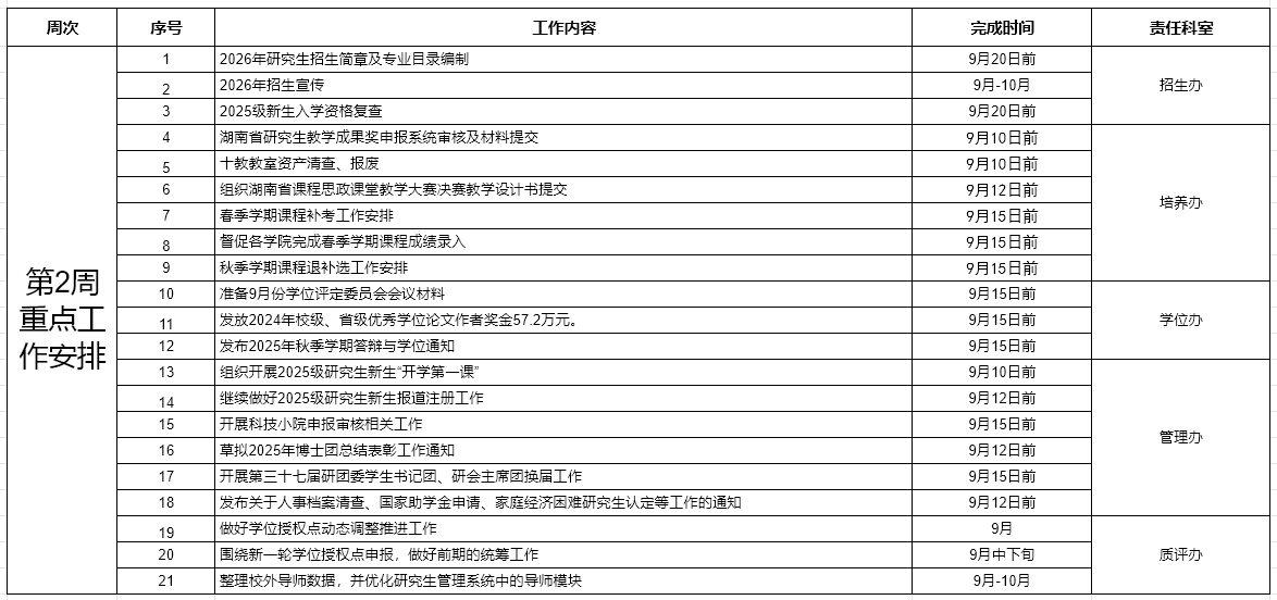 研究生工作部、研究生院2025年秋季学期第二周工作计划